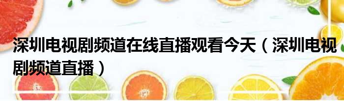 深圳电视剧频道在线直播观看今天(深圳电视剧频道直播)
