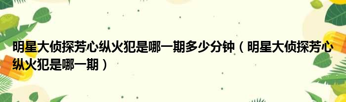 明星大侦探芳心纵火犯是哪一期多少分钟(明星大侦探芳心纵火犯是哪一期)