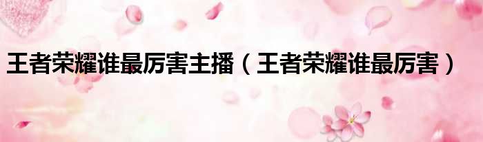 王者荣耀谁最厉害主播(王者荣耀谁最厉害)