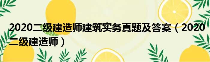 2020二级建造师建筑实务真题及答案(2020二级建造师)