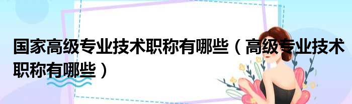 国家高级专业技术职称有哪些(高级专业技术职称有哪些)