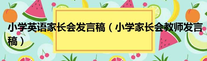 小学英语家长会发言稿(小学家长会教师发言稿)