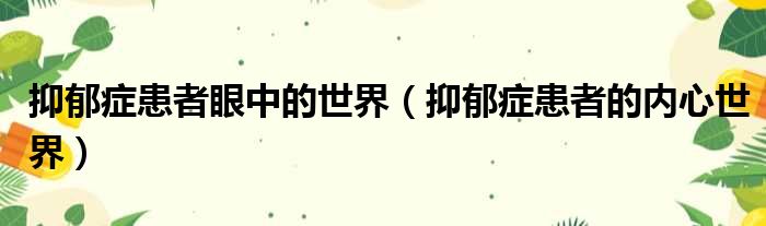 抑郁症患者眼中的世界(抑郁症患者的内心世界)