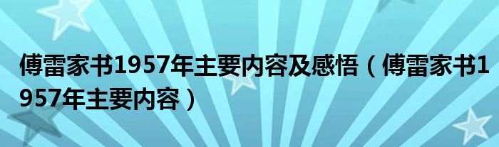 傅雷家书1957年主要内容及感悟(傅雷家书1957年主要内容)
