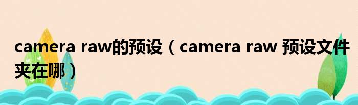 导读 大家好,小东方来为大家解答以上的问题。camera raw的预设,camera raw 预设文件夹在哪这个很多人还不知道,现在让我们一起来看看吧!1、