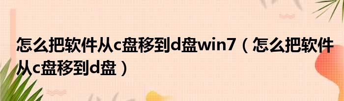 怎么把软件从c盘移到d盘win7(怎么把软件从c盘移到d盘)