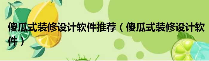 傻瓜式装修设计软件推荐(傻瓜式装修设计软件)