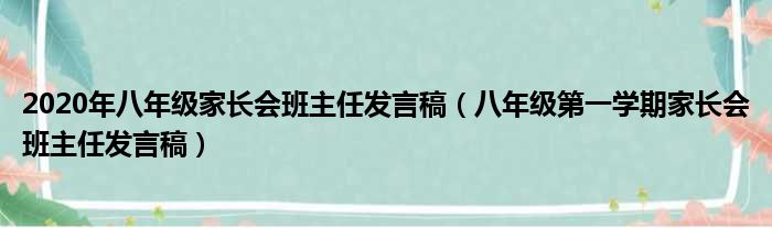 2020年八年级家长会班主任发言稿(八年级第一学期家长会班主任发言稿)