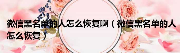 微信黑名单的人怎么恢复啊(微信黑名单的人怎么恢复)