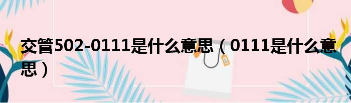 大家好,小东方来为大家解答以上的问题。交管502-0111是什么意思,0111是什么意思这个很多人还不知道,现在让我们一起来看看吧!