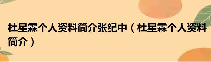 杜星霖个人资料简介张纪中(杜星霖个人资料简介)