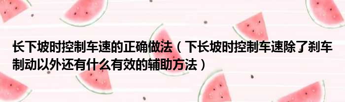 长下坡时控制车速的正确做法(下长坡时控制车速除了刹车制动以外还有什么有效的辅助方法)