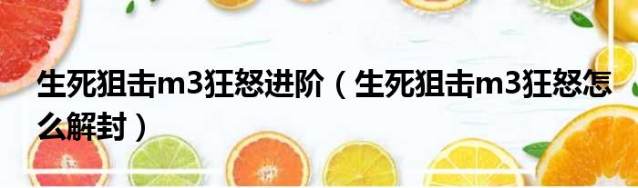 生死狙击m3狂怒进阶(生死狙击m3狂怒怎么解封)