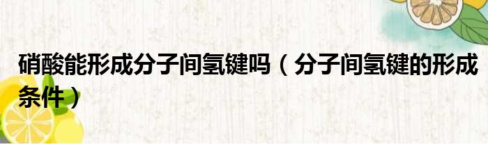 硝酸能形成分子间氢键吗(分子间氢键的形成条件)