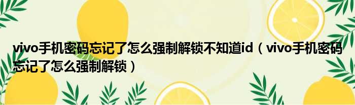 vivo手机密码忘记了怎么强制解锁不知道id(vivo手机密码忘记了怎么强制解锁)