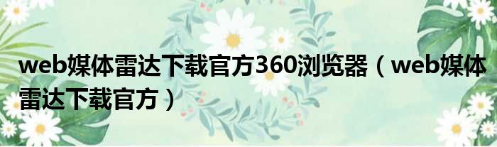 web媒体雷达下载官方360浏览器(web媒体雷达下载官方)