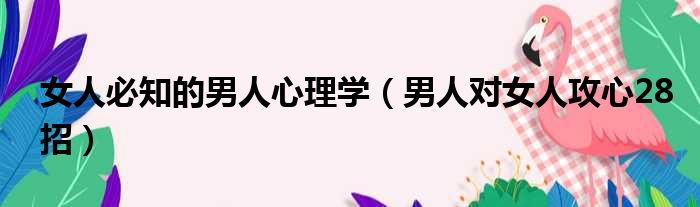 大家好,小东方来为大家解答以上的问题。女人必知的男人心理学,男人对女人攻心28招这个很多人还不知道,现在让我们一起来看看吧!