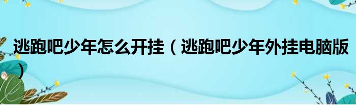逃跑吧少年怎么开挂(逃跑吧少年外挂电脑版)