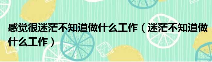 感觉很迷茫不知道做什么工作(迷茫不知道做什么工作)