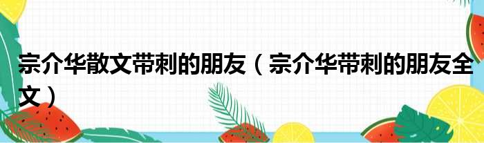 宗介华散文带刺的朋友(宗介华带刺的朋友全文)