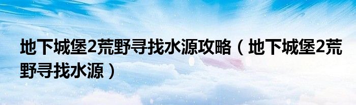 地下城堡2荒野寻找水源攻略(地下城堡2荒野寻找水源)