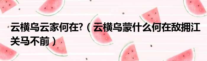 云横乌云家何在?(云横乌蒙什么何在敌拥江关马不前)