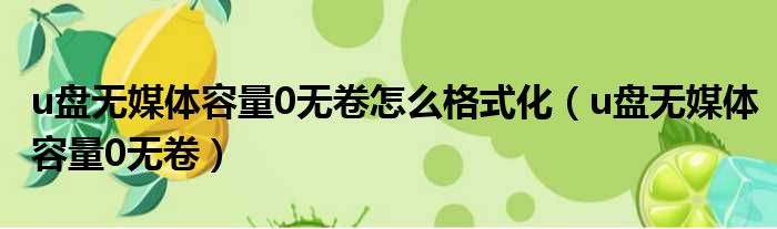 u盘无媒体容量0无卷怎么格式化(u盘无媒体容量0无卷)