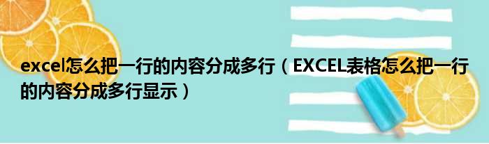 excel怎么把一行的内容分成多行(EXCEL表格怎么把一行的内容分成多行显示)