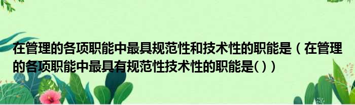 在管理的各项职能中最具规范性和技术性的职能是(在管理的各项职能中最具有规范性技术性的职能是( ))