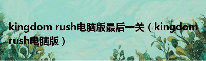 kingdom rush电脑版最后一关(kingdom rush电脑版)