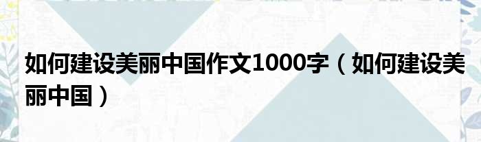 如何建设美丽中国作文1000字(如何建设美丽中国)