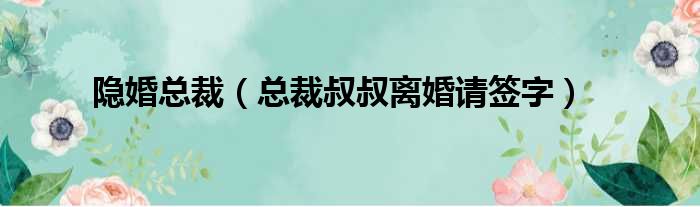 大家好,小东方来为大家解答以上的问题。隐婚总裁,总裁叔叔离婚请签字这个很多人还不知道,现在让我们一起来看看吧!