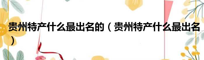 贵州特产什么最出名的(贵州特产什么最出名)