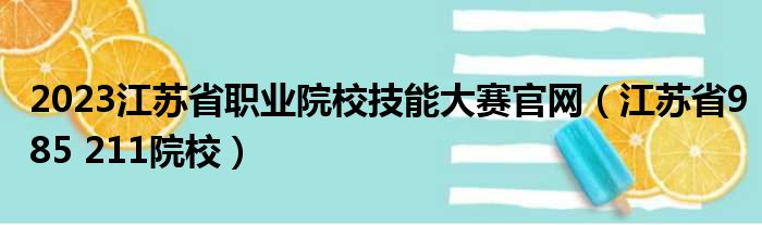 大家好,小东方来为大家解答以上的问题。2023江苏省职业院校技能大赛官网,江苏省985 211院校这个很多人还不知道,现在让我们一起来看看吧!