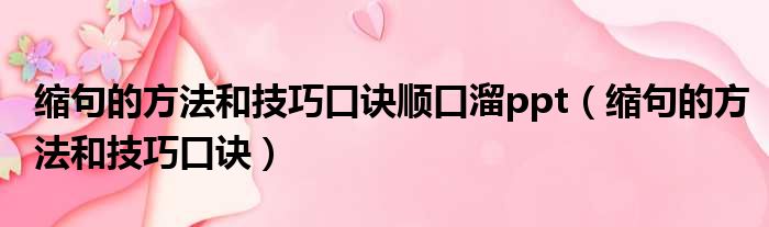 缩句的方法和技巧口诀顺口溜ppt(缩句的方法和技巧口诀)