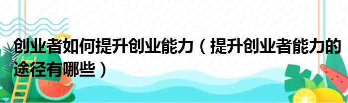 创业者如何提升创业能力(提升创业者能力的途径有哪些)