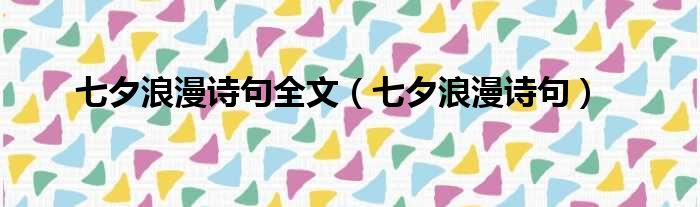 七夕浪漫诗句全文(七夕浪漫诗句)