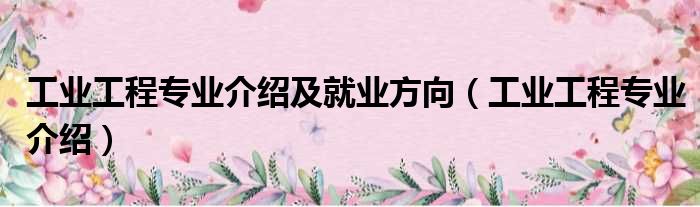 工业工程专业介绍及就业方向(工业工程专业介绍)