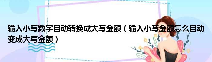 输入小写数字自动转换成大写金额(输入小写金额怎么自动变成大写金额)