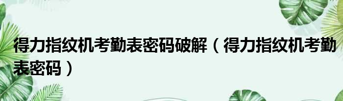得力指纹机考勤表密码破解(得力指纹机考勤表密码)