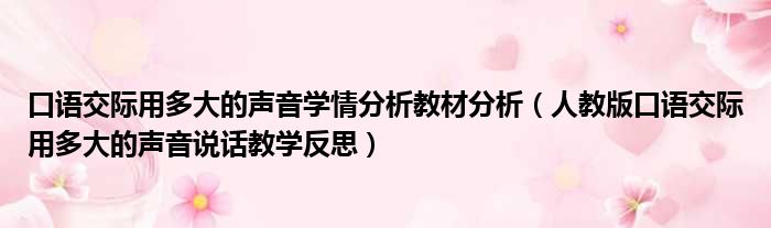 口语交际用多大的声音学情分析教材分析(人教版口语交际用多大的声音说话教学反思)