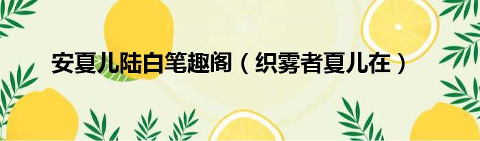 大家好,小东方来为大家解答以上的问题。安夏儿陆白笔趣阁,织雾者夏儿在这个很多人还不知道,现在让我们一起来看看吧!