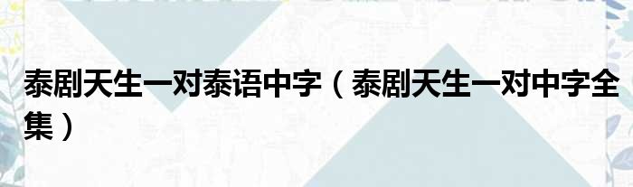 泰剧天生一对泰语中字(泰剧天生一对中字全集)