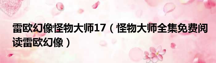 导读 大家好,小东方来为大家解答以上的问题。雷欧幻像怪物大师17,怪物大师全集免费阅读雷欧幻像这个很多人还不知道,现在让我们一起来看看吧!1