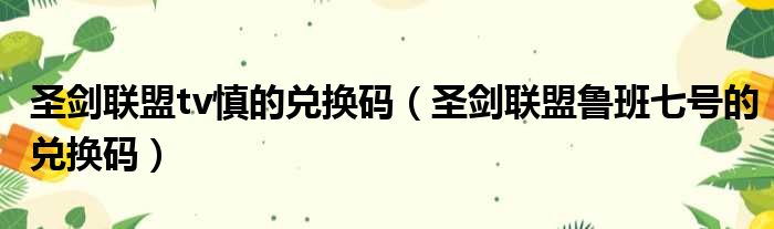 圣剑联盟tv慎的兑换码(圣剑联盟鲁班七号的兑换码)