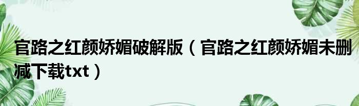 官路之红颜娇媚破解版(官路之红颜娇媚未删减下载txt)