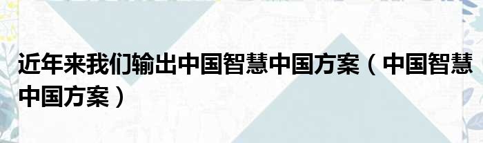 近年来我们输出中国智慧中国方案(中国智慧中国方案)