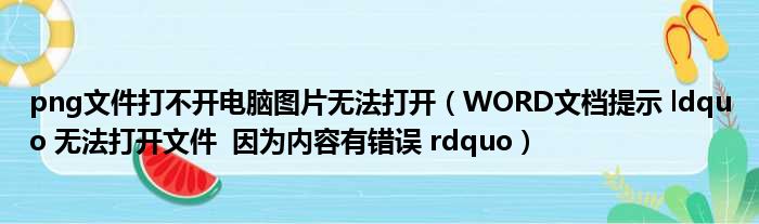 png文件打不开电脑图片无法打开(WORD文档提示 ldquo 无法打开文件 因为内容有错误 rdquo)