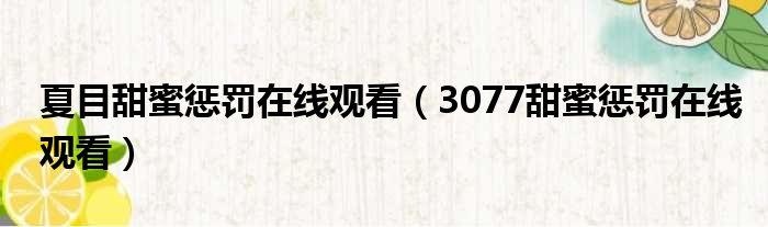 夏目甜蜜惩罚在线观看(3077甜蜜惩罚在线观看)