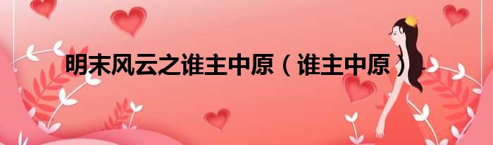 大家好,小活来为大家解答以上的问题。明末风云之谁主中原,谁主中原这个很多人还不知道,现在让我们一起来看看吧!